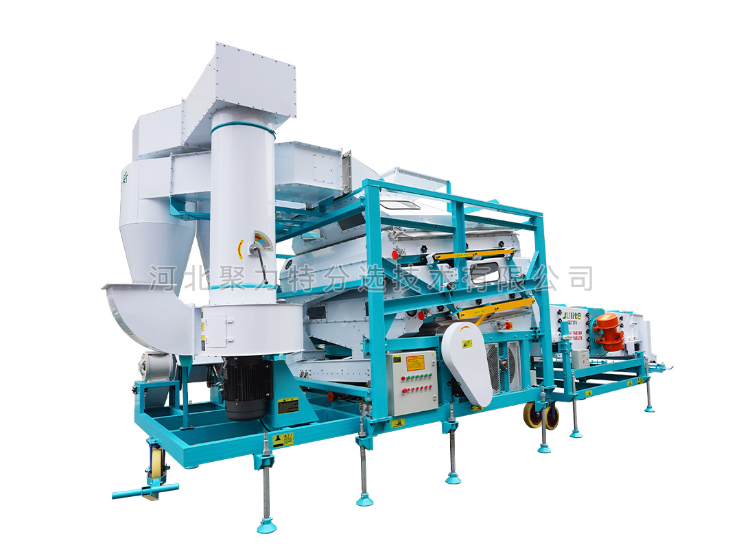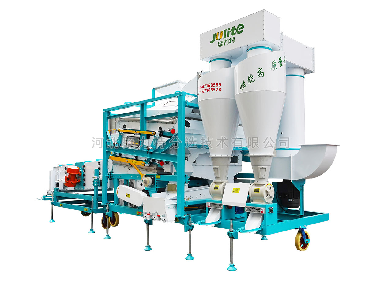 高粱篩選組合設(shè)備由雙體脫殼機(jī)、低速無破碎提升機(jī)、復(fù)式比重清選機(jī)、雙篩箱振動篩組成。